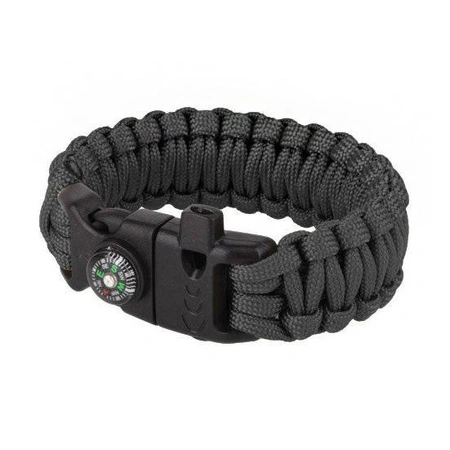 101 Inc. - Bransoletka survivalowa z krzesiwem, gwizdkiem i kompasem - 8" - Czarny - JYFPB04-BLK
