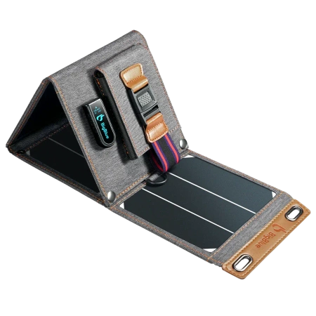 - Ultra-przenośna ładowarka solarna 14W ze stylową kieszenią na telefon. Lekka i poręczna, doskonała na krótkie wycieczki, spacery i plażowanie.