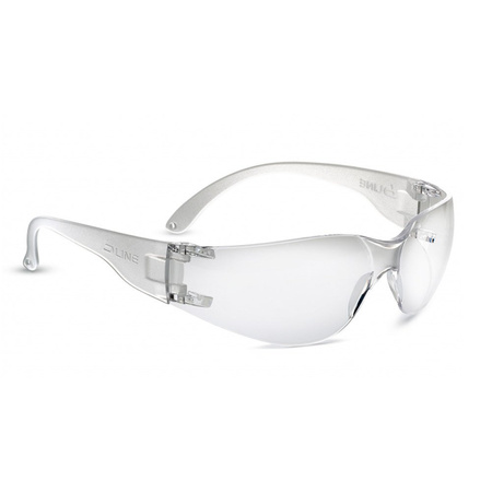 Przezroczyste okulary ochronne wyprodukowane przez firme Bolle, posiadają panoramiczny wizjer Curve 9,5 oraz system "Stop-in" który nie pozwala zausznikom opieranie się o powierzchnię wizjera, dzięki czemu zmniejsza się ryzyko zarysowania soczewki. Posiada również nakładaną z obu stron powłokę anti-fog zapobiegającą parowaniu.