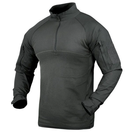 Combat Shirt od firmy Condor to taktyczna bluza zaprojektowana do pracy w kamizelkach taktycznych i intensywnym użytkowaniu outdoorowym. W centralnej części zastosowano lekki, elastyczny materiał poliestrowy ze spandexem, który skutecznie odprowadza wilgoć i zapewnia komfort termiczny. Rękawy wykonano z wytrzymałego materiału RipStop, odpornego na przetarcia. Nie posiadają szwów na ramieniu - co eliminuje obtarcia przy noszeniu plecaka.