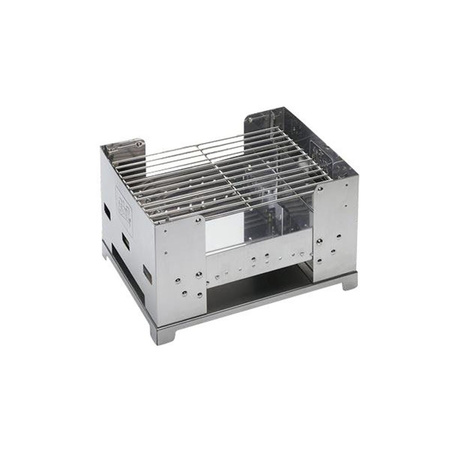 Nie rezygnuj z grillowania gdziekolwiek się znajdujesz! Specjalna, składana konstrukcja, wykonana jest ze stali nierdzewnej, co zapewni szybkie i łatwe rozkładanie oraz czyszczenie. Podstawka zapewnia doskonałą stabilizację na każdym podłożu. Ruszt może być zamocowany na trzech różnych wysokościach, a zdejmowanie go i zakładanie ułatwia chwytak.