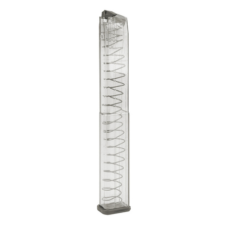 Magazynek przedłużany do pistoletów Heckler&Koch VP9. W kalibrze 9x19 mm Para, o pojemności 40 sztuk amunicji. Wykonany z polimeru, dzięki czemu jest lżejszy od stalowych. Przezroczysta barwa pozwala na kontrolowanie stanu amunicji. Zastosowany materiał jest lekki i odporny na uderzenia i odkształcenia. Magazynek może być długotrwale przechowywany z załadowaną amunicją. Stopka jest łatwo demontowana, co upraszcza czyszczenie i konserwację. Dodatkowo ułatwia wyciąganie magazynka z ładownicy.