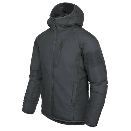 Lekka kurtka z wypełnieniem ociepliną Wolfhound Hoodie od firmy Helikon. Stworzona do codziennego noszenia podczas chłodnej pogody, a także do użytku podczas długich wędrówek w lesie jako odzież wierzchnia albo warstwa ocieplająca pod wierzchnią kurtkę softshell lub przeciwdeszczową. Posiada regulowany kaptur, który chroni głowę przed wiatrem i chłodem, a kiedy nie jest nałożony tworzy swoisty komin dla osłony szyi.