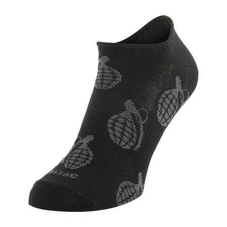Lekkie letnie skarpetki marki M-TAC to jeden z najbardziej poszukiwanych produktów dla mężczyzn. Wykonane zostały z lekkich, oddychających materiałów: 85% bawełny, 10% poliestru, 5% elastanu . Taki skład produktu zapewnia optymalną regulację termiczną, dzięki czemu stopy w skarpetkach zawsze pozostają suche. Mają skróconą konstrukcję z ergonomicznie rozmieszczonymi punktami nacisku dla optymalnego dopasowania i są praktycznie niewidoczne w bucie. Grafiki, przedstawiające granaty, nadają skarpetkom oryginalny wygląd, a ich anatomiczny kształt zapewnia wygodę noszenia butów. Ten model jest doskonale wentylowany i świetnie nadaje się do codziennego użytku, uprawiania sportu i wędrówek w sezonie gorącym. Materiał: Bawełna 85% Poliamid 10% Elastan 5%