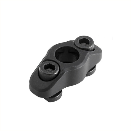 Montaż QD pod uchwyt zawieszenia taktycznego. Wykonany z aluminium, zabezpieczonego pokryciem wysokiej twardości. Mocowany na dwie dołączone do zestawu śruby w systemie M-LOK. Umożliwia zaczepienie ucha w 4 pozycjach w obrębie 360°. Uchwyt do zawieszenia taktycznego nie znajduje się w zestawie.