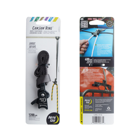 Praktyczna klamra CamJam™ w wariancie Ring™ od firmy Nite Ize. Przyrząd posiada dwa elementy składowe - klamrę i taśmę. Klamra służy do napinania, zaczepiania lub zabezpieczania linki między innymi typu paracord o średnicy od 3 do 9 mm, natomiast taśma do zapięcia wokół wybranego przedmiotu o obwodzie około 40 cm. Takie rozwiązanie pozwala w szybki sposób, pewnie unieruchomić zadany bagaż, ekwipunek, banery, tarpy, a także namioty.