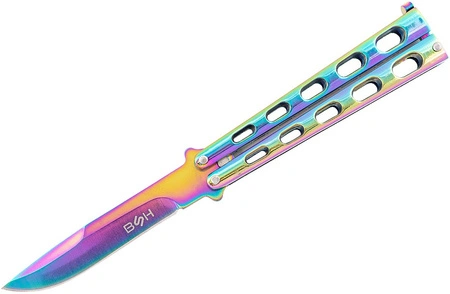 Efektownie wyglądający i bardzo solidnie wykonany nóż motylkowy w kolorze Rainbow Fade.