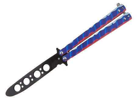 Rewelacyjny nóż motylkowy, który dzięki tępemu ostrzu doskonale sprawdzi się jako przyrząd treningowy.