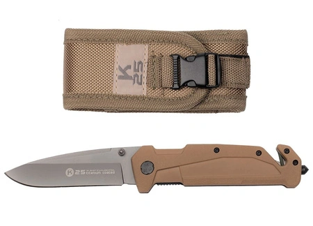 Niezawodny nóż ratowniczy w kolorze pustynnym od znanej, hiszpańskiej marki K25.