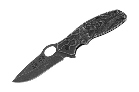 Ostra głownia o lekko falowanym profilu clip point została wykonana z wysokojakościowej stali nierdzewnej 440, która została pokryta wspomnianą warstwą ochronną w stonewash.