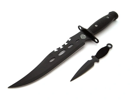W zestawie z wielkim nożem wojskowym znajduje się rewelacyjnie wyważona rzutka o długości 15 centymetrów.