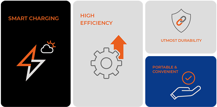 Nowa seria SolarPowa 30 – TOPCon to lekka i kompaktowa ładowarka słoneczna zaprojektowana z myślą o mobilności i wysokiej wydajności ładowania. Elegancka, 3-krotnie składana konstrukcja pozwala na jej rozłożenie, aby zmaksymalizować absorpcję światła słonecznego, wykorzystując moc zaawansowanych ogniw słonecznych TOPCon dla zapewnienia doskonałej wydajności.