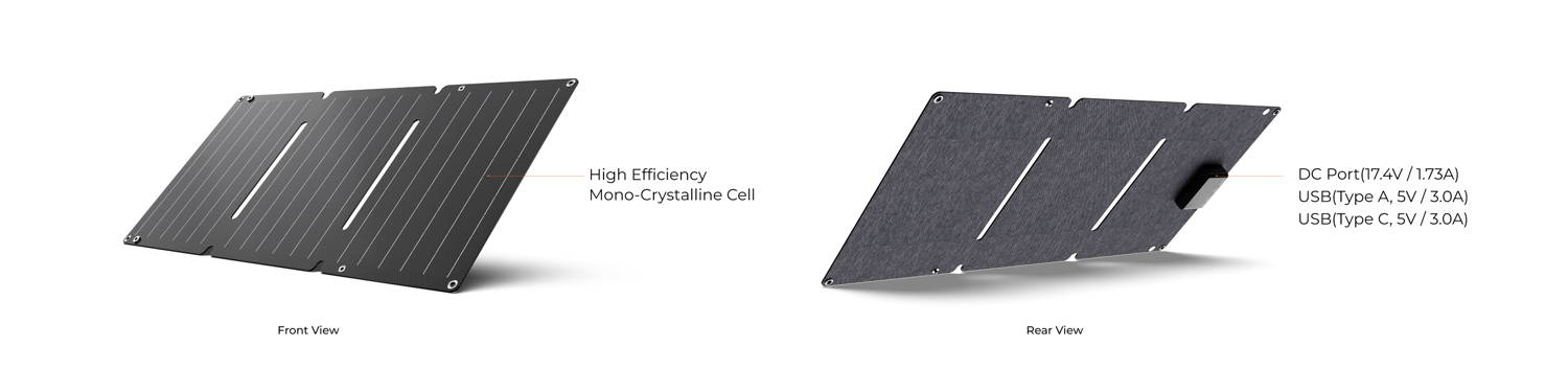 - Nowoczesna ładowarka 30W wykorzystująca zaawansowane ogniwa TOPCon dla maksymalnej wydajności. Posiada wyjścia USB oraz DC, oferując wszechstronność zastosowań w lekkiej obudowie.