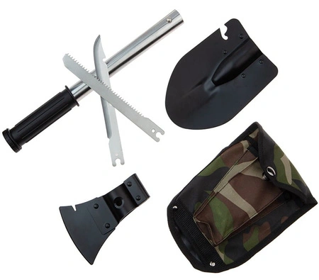 ŁOPATA - SIEKIERA - PIŁA - OTWIERACZ x2 - NÓŻ - HAK - ŁAPKA (ŁOM) - POKROWIEC