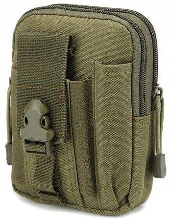 Niezwykle użyteczna saszetka taktyczna w kolorze zielonym z miejscem na telefon komórkowy.
