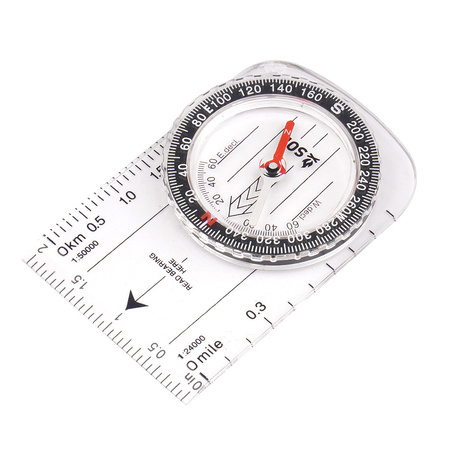 Lekki kompas mapowy na przeźroczystej podstawie, przeznaczony do nawigacji w terenie z użyciem mapy. Posiada obrotową podziałkę kątową, dwie skale oraz krótką smycz umożliwiającą zawieszenie go.