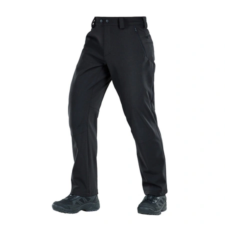 Spodnie M-Tac SoftShell. Tkanina softshell łączy w sobie właściwości termoizolacyjne i oddychające polaru oraz odporność na wiatr i wilgoć, a także wytrzymałość warstwy zewnętrznej. Zewnętrzna powierzchnia blokuje wiatr, a wewnętrzna tkanina odprowadza nadmiar wilgoci. Stosuje się ją jako warstwę wierzchnią w warunkach jesienno-wiosennych oraz zimowych. Dla uzyskania dodatkowego komfortu w zimnych porach roku producent dodał polarową podszewkę. Materiał: softshell (100% polyester) Charakterystyki: - Odporność na wiatr i wodę dzięki materiałowi softshell - Prosty krój z wysokim pasem - 2 boczne kieszenie - 2 tylne kieszenie - 2 kieszenie cargo - Szerokie szlufki na pasek Zamek błyskawiczny: YKK. Soft Shell to odzież, która chroni przed warunkami atmosferycznymi i ma minimalną wagę i objętość. Powstała jako przeciwwaga dla zwykłej odzieży, która zapewniła schronienie przed wiatrem i deszczem w kurtkach i spodniach sztormowych, a także jako ocieplenie polarem i puchem. Dzięki Soft Shell możliwe jest uzyskanie maksymalnego efektu już przy jednej warstwie odzieży, zastępuje ona trzy lub więcej warstw. Firma YKK jest światowym liderem w produkcji zamków na ubrania. Produkuje 90% wszystkich takich suwaków w 71 fabrykach na całym świecie. Jest to grupa japońskich firm, których znak firmowy został zarejestrowany prawie 70 lat temu. YKK jest rozszyfrowana i przetłumaczona z języka japońskiego jako "Yoshida Factory" – jest to nazwisko założyciela firmy, który otworzył produkcję zapięć do odzieży w latach 30-tych XX wieku. Sukces został osiągnięty dzięki współpracy z wiodącymi markami odzieżowymi oraz wprowadzeniu szczególnie surowych standardów jakościowych. Ponadto, przez bardzo długi czas maszyna do produkcji wysokiej jakości zapięć była utrzymywana ścisłą tajemnicą. Pomogło to firmie szybko ominąć głównych konkurentów.Kod producenta