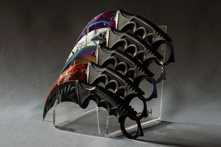 Stojak został stworzony z myślą o nożach motylkowych, karambitach oraz nożach treningowych – to właśnie z tymi typami współgra najlepiej, zapewniając im odpowiednie podparcie i atrakcyjną prezentację.