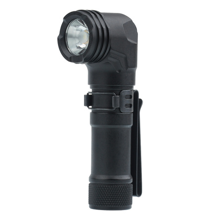 Latarka kątowa EDC, przystosowana do zasilania trzema rodzajami baterii, o mocy maksymalnej 300 lumenów, dwóch trybach światła ciągłego i sygnałowym trybie stroboskopowym, programowaniem TEN-TAP®, okularem ze szkła hartowanego oraz korpusem z anodowanego aluminium, o klasie odporności IPX7, z klipsem umożliwiającym przywieszenie przy taśmie MOLLE lub kieszeni.