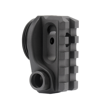Adapter wyposażony w szynę Picatinny 1913 długości 4 slotów, przeznaczoną do montażu składanej kolby lub stabilizera w karabinkach rodziny AR, wyposażonych w upper z wewnętrznym buforem odrzutu. Działa zarówno z komorami spustowymi AR-15 jak i AR-10.