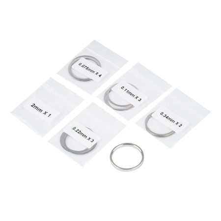 Zestaw trzynastu podkładek ze stali nierdzewnej, do mocowania urządzenia wylotowego na karabinkach AR z lufą kalibru .308 / 7,62 mm. Podkładki posiadają różną grubość, co umożliwia precyzyjne ustawienie pozycji urządzenia.