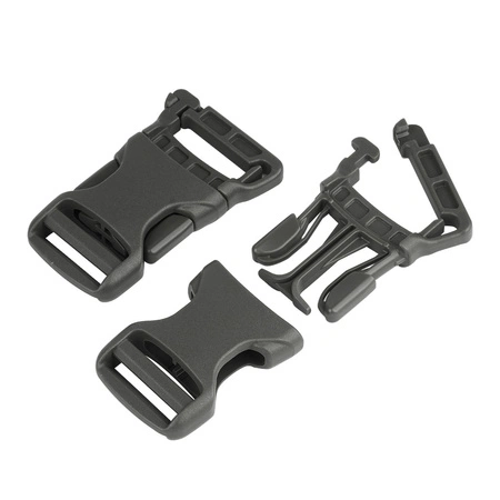 Zestaw dwóch uniwersalnych klamer. W zależności od potrzeb mogą one zostać wykorzystane jako element zamienny lub posłużyć do montażu dodatkowego oporządzenia. Otwory pozwalają na wykorzystanie różnego rodzaju troków i pasków o szerokości do 25 mm. Część żeńska klamry posiada klips kompatybilny z systemem MOLLE, co pozwala na przypięcie ich do plecaka taktycznego.