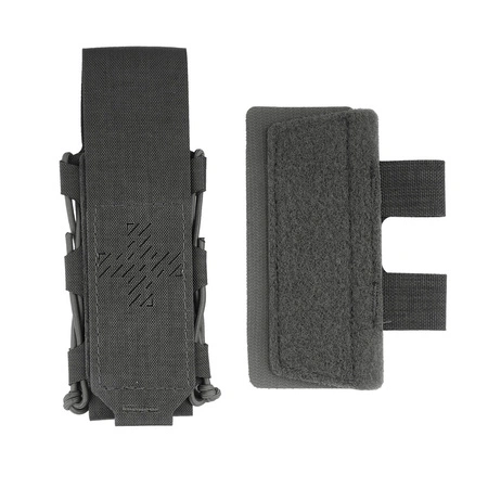 Wykonana z wytrzymałej Cordury kieszeń na opaskę uciskową. Zapinana na panel z rzepem. Elastyczne ściągacze dociskają zawartość i zabezpieczają ja przed wypadnięciem w trakcie manewrów. Przeznaczona do montażu na kamizelkach taktycznych i pasach w systemie MOLLE. W zestawie znajduje się adapter w postaci panelu rzepowego, który umożliwia zamocowanie jej w pionie lub poziomie.