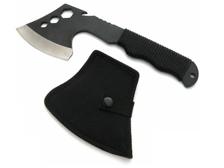 W komplecie znajduje się czarny pokrowiec na ostrze, dzięki któremu można przymocować toporek biwakowy do paska spodni.