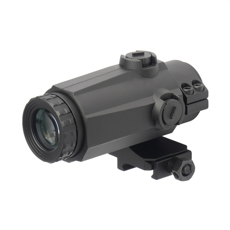 Vector Optics Maverick III to powiększalnik zaprojektowany do współpracy z kolimatorami montowanymi do szyny Picatinny. Zapewnia trzykrotne powiększenie przy szerokim polu widzenia - około 18 m na 100 m. Tak szeroki zakres pozwala na obserwację i prowadzenie ognia na średnich dystansach bez utraty orientacji w terenie.