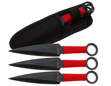 W komplecie wraz z trzema nożami znajduje się czarny pokrowiec z cordury, który można przymocować do paska spodni.