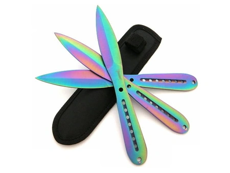Zestaw spektakularnych noży do rzucania w wersji rainbow fade.